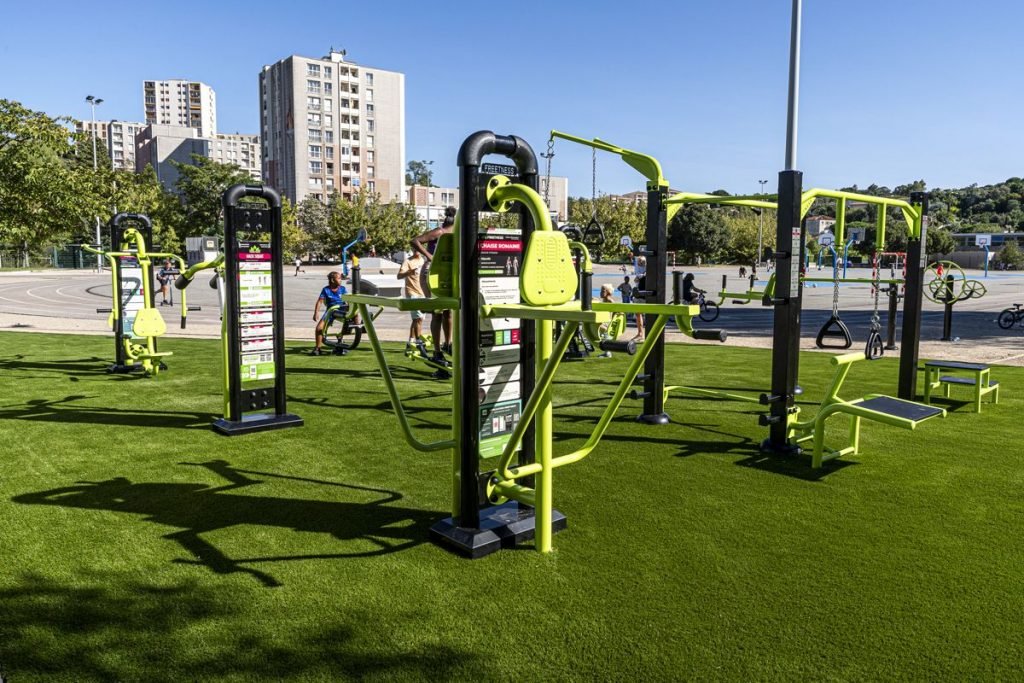 Afin de garantir stabilité et sécurité, la norme européenne préconise une finition de sol pour votre installation sportive de plein air selon les hauteurs de chute inhérentes à vos agrès. Besoin de recommandations ? Contactez notre équipe !