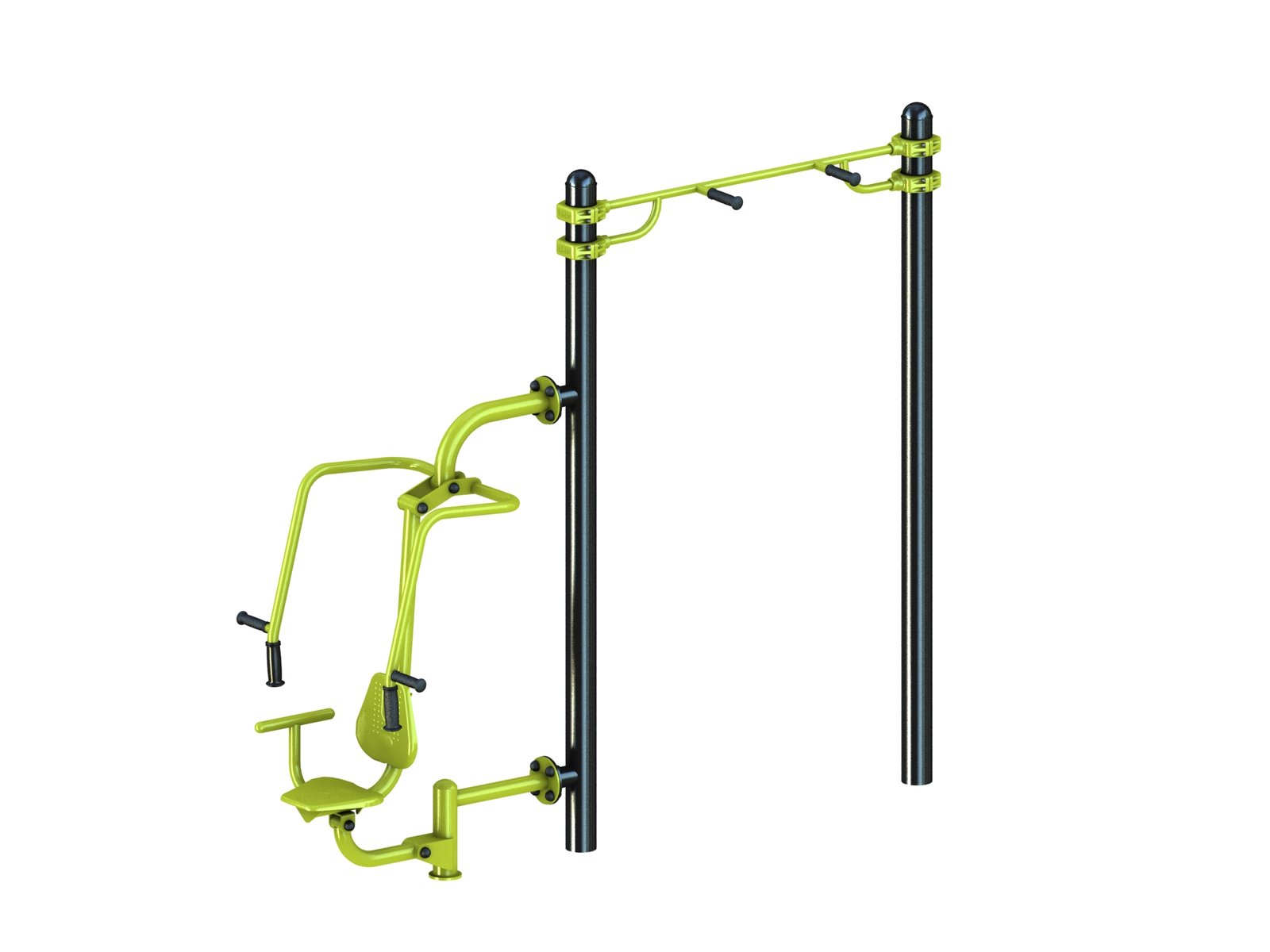 La station combo 24 est un agrès de sport extérieur. C’est un combiné qui regroupe le Push et la barre de traction à poignée. Idéal dans un parc sportif.