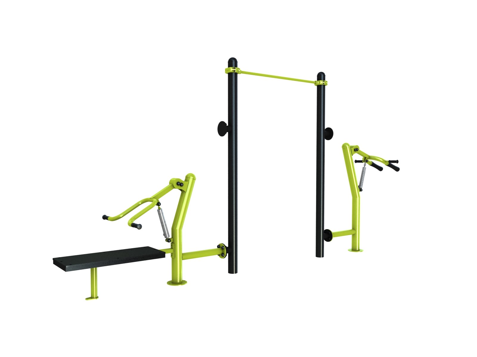 La station combo 32 est un agrès de sport extérieur. C’est un combiné qui regroupe le Chest Press, le Hack squat et la barre de traction.
