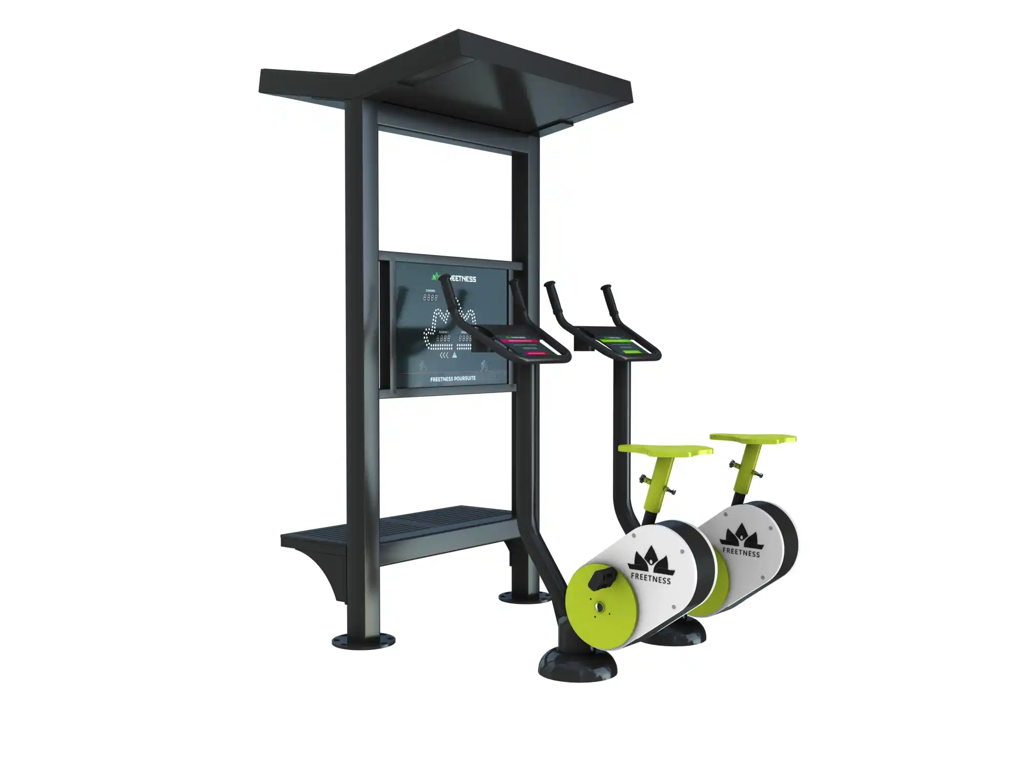 Fonctionnant grâce à des panneaux solaires, il ne nécessite aucun branchement électrique ! Il bénéficie également de sièges réglables en acier thermolaqué, d’un système de traduction en 4 langues et s’adapte à pas moins de 4 profils sportifs. Découvrez son tout nouveau pédalier plus durable et résistant, doté d’un système anti-coincement de doigts et favorisant un meilleur confort d’utilisation.