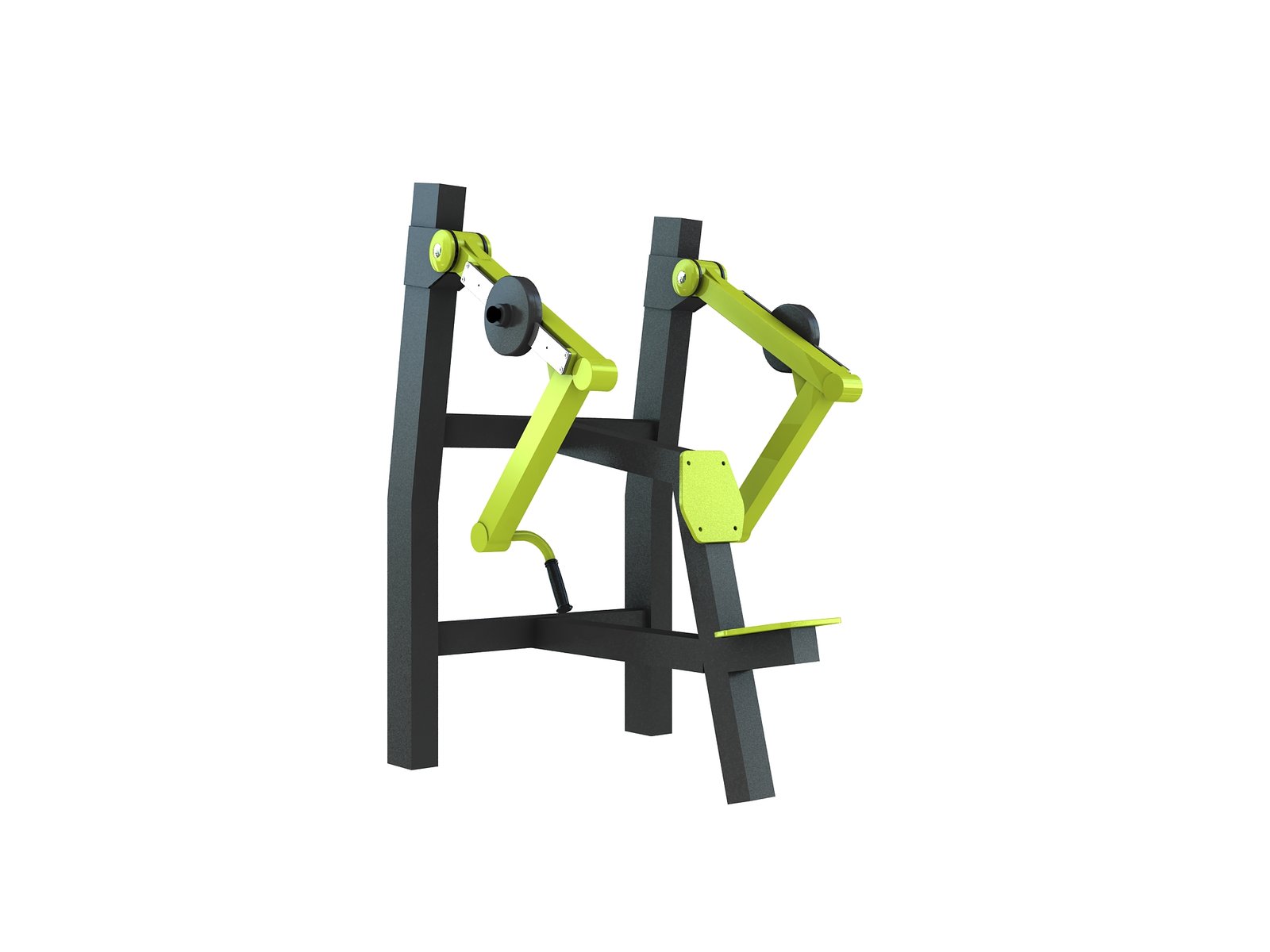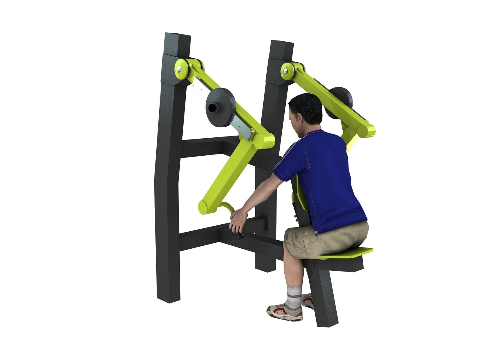 Le Low Row Machine est un appareil de musculation extérieur avec des poids. Conçu pour un parc de sport en plein air, il permet de travailler le dos.